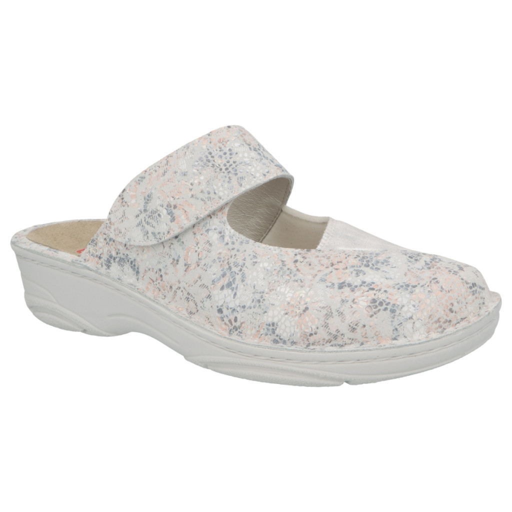 Kényelmes, barack színű, áttört csipkés mintájú, anatómiai kialakítású női klumpa, melyet különösen ajánlunk otthoni vagy munkahelyi használatra.