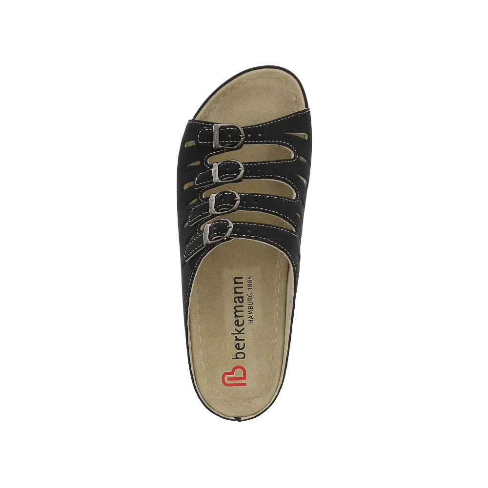Kiváló minőségű bőrből, öt ponton alátámasztott anatómiai talpkialakítással készült papucs.